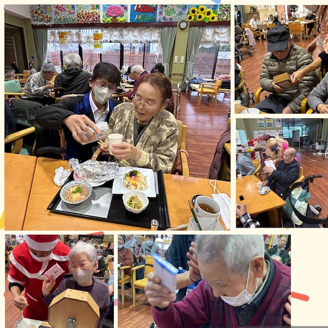 毎年、利用者様と年末を過ごし笑って新年を迎えるための忘年会💕歳末祭は職員も気合が入ります。今年も恒例のお鍋👌やちらし寿司をご堪能いただきました。いろりといえばカラオケ三昧╰(*°▽°*)╯紅白に分かれ仮装をして場を盛り上げました。ガラポン抽選会、一等はお菓子の詰め合わせ、二等はタオル・・・箱ティッシュやキーホルダー、ポケットティッシュを皆さんにプレゼントしました。今年も笑って🤣🤣🤣歳末祭が終了しました。